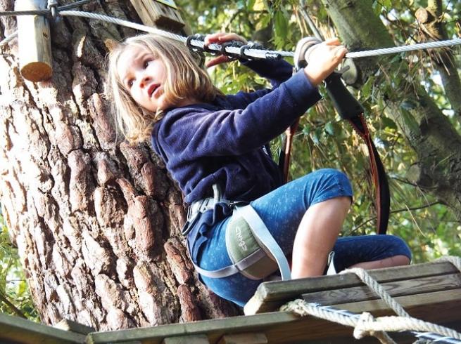 - Moulinette, tyrolienne, pont de singe, pendule, descente en rappel et passerelle népalaise.