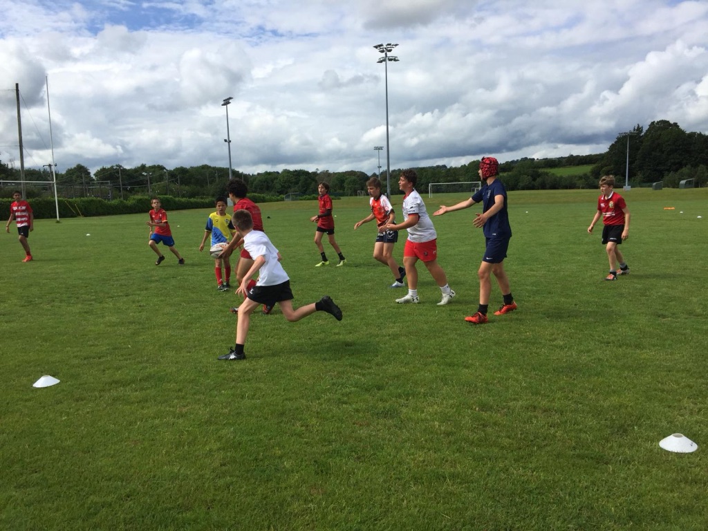 - Travail de la technique individuelle (passe, plaquage, jeu au pied...) et de la tactique collective (mêlée, touche...).