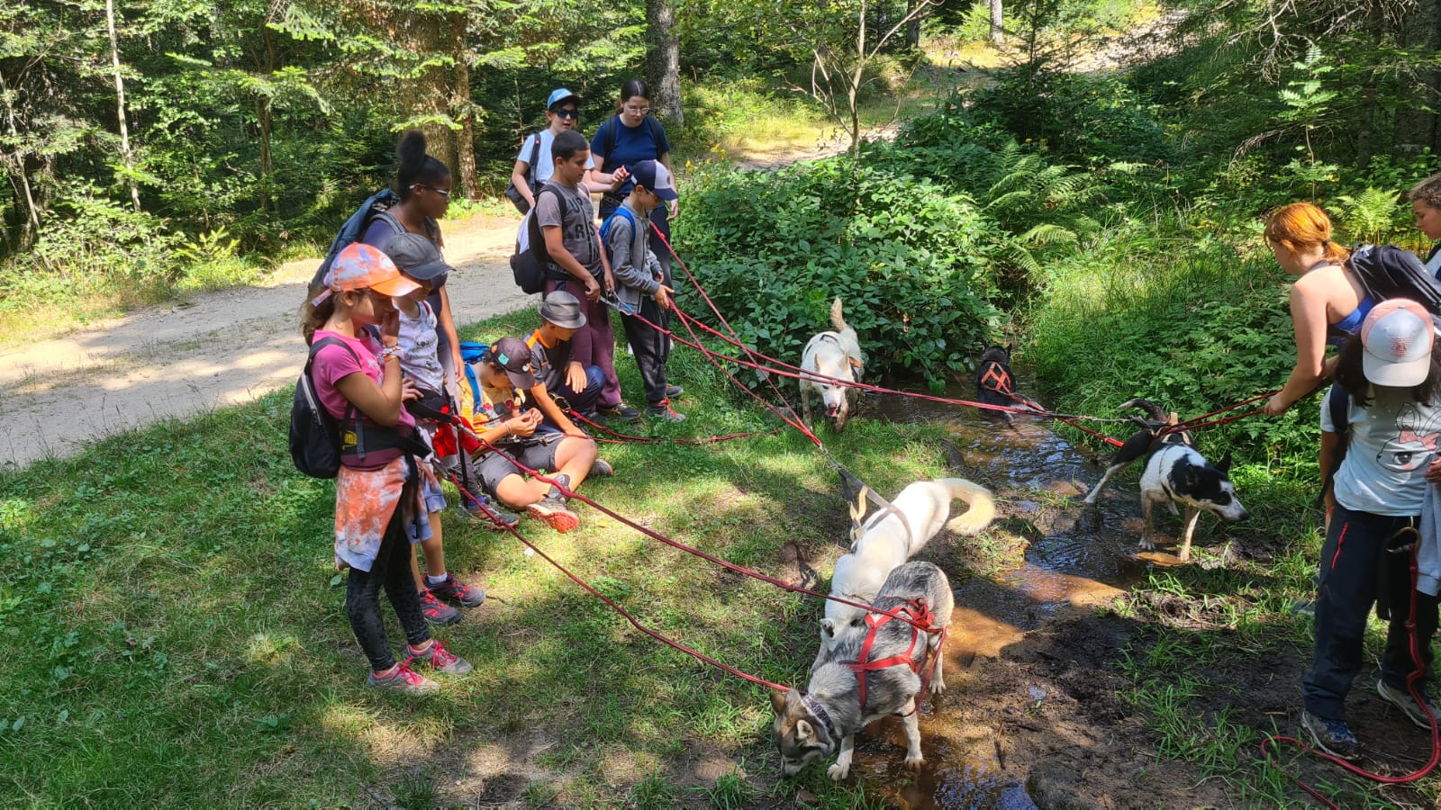 - Après-midi : Activités en plein air avec les chiens, soins et préparation des chiens pour la randonnée ou activités manuelles et grands jeux en équipe.