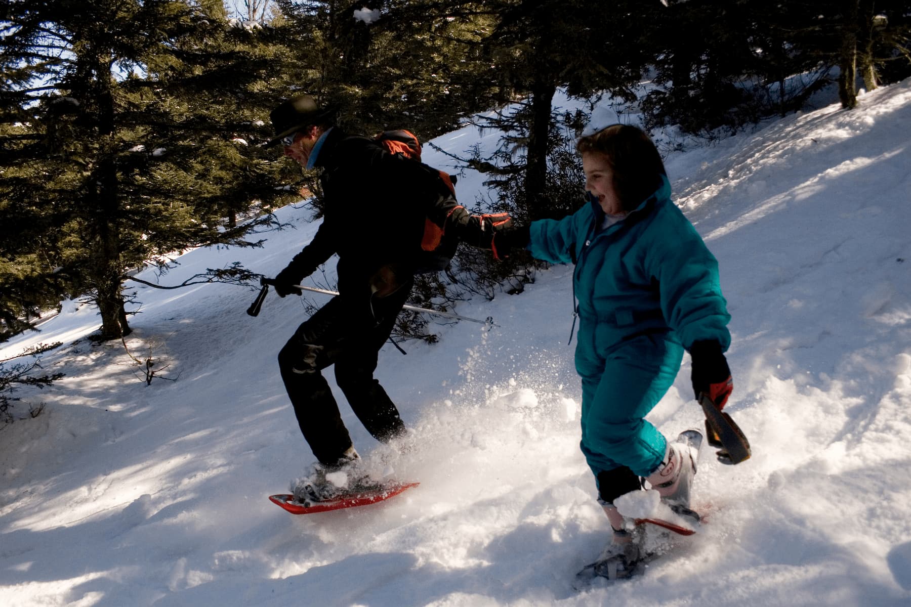 La neige permet aussi de jouer aux trappeurs 🥾: partir en balade en raquettes, et apprendre à suivre les animaux 🦌 à la trace pour essayer de les filmer 📸.