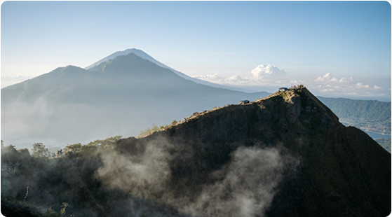 🌄 Mont Batur, coucher de soleil magique : Ascension du volcan pour admirer un coucher de soleil spectaculaire sur les paysages volcaniques de Bali.