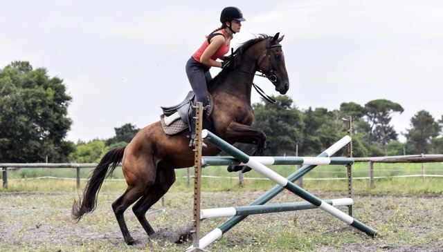 Franchissement des obstacles : Techniques d’approche, de franchissement et de réception des obstacles, avec un travail particulier sur l’équilibre et la légèreté. Mise en pratique sur un parcours de 8 à 10 obstacles.
