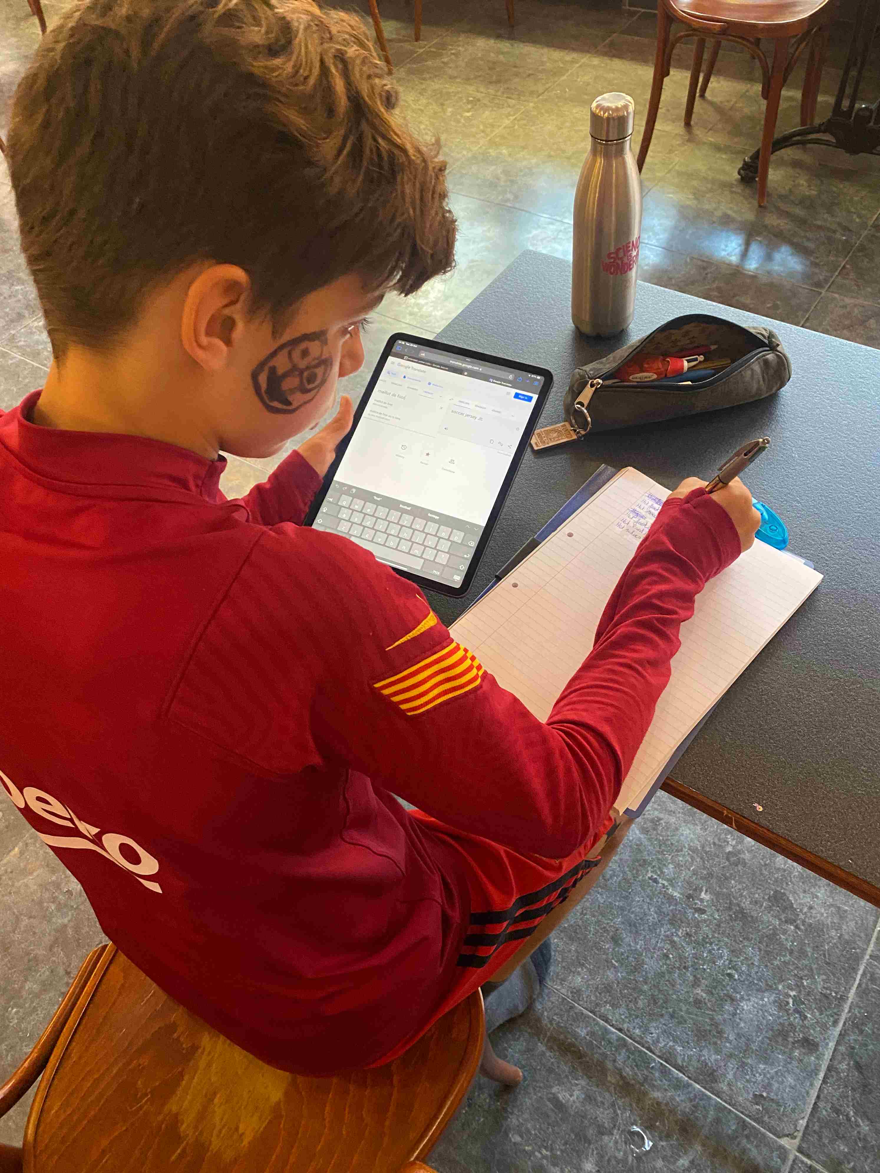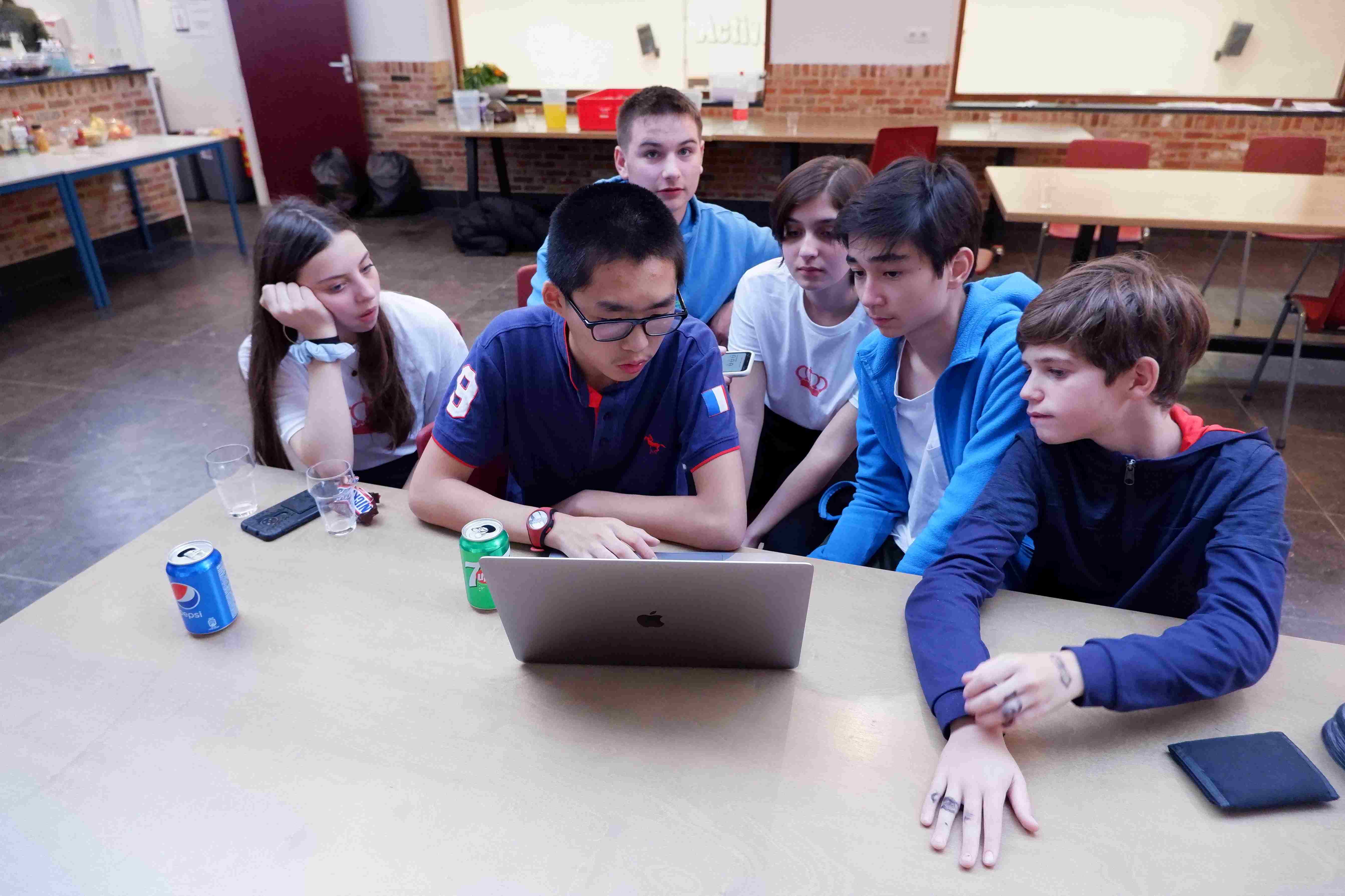 Un membre du personnel s'assied sur chaque table de la cantine pour s'assurer que les étudiants pratiquent leur anglais même pendant les repas.