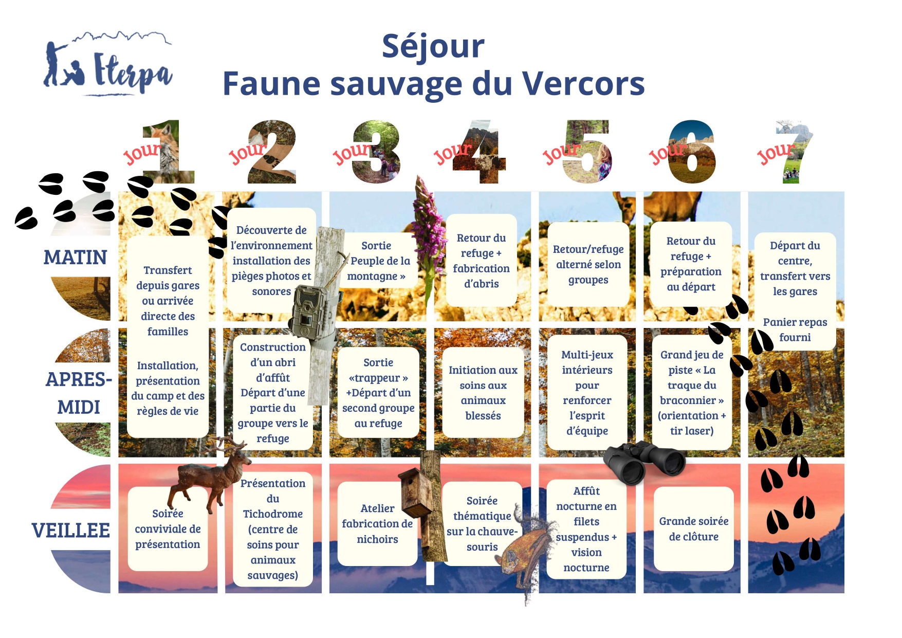 - Après-midi : Grand jeu de piste « La traque du braconnier » (orientation + tir laser)