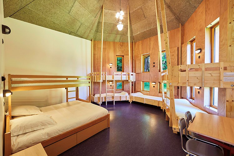Des chambres confortables de 4 à 8 lits sont toutes équipées de lavabos et de salle de bain privative. C’est un bâtiment qui comporte aussi de nombreuses salles d’activités.