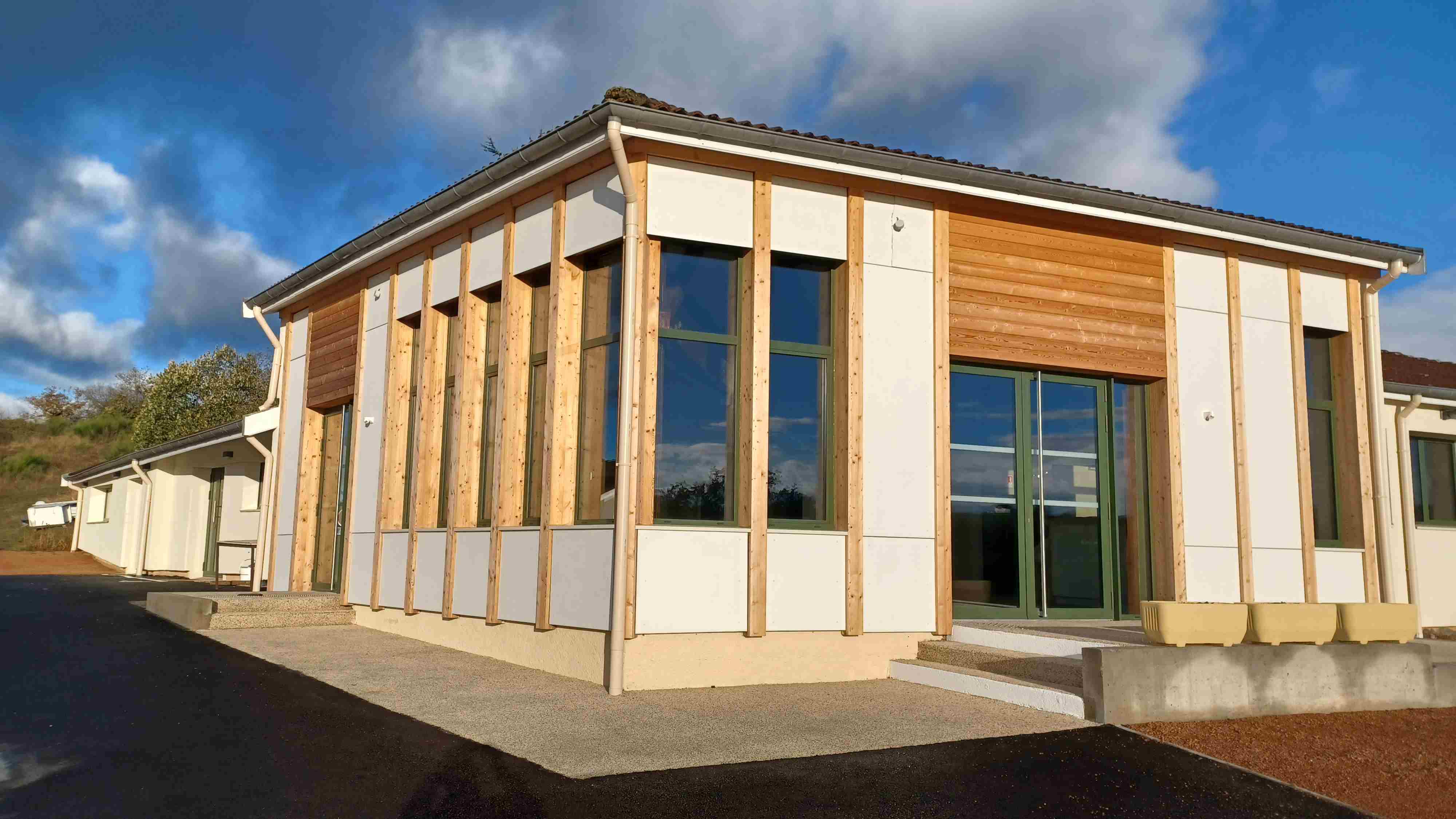 -Le centre comprend trois bâtiments : un espace collectif (cuisine, restauration, salles d’activités) et deux bâtiments nuit avec sanitaires collectifs. Le bâtiment B offre 30 lits (6 chambres) et le bâtiment C, 24 lits (5 chambres).