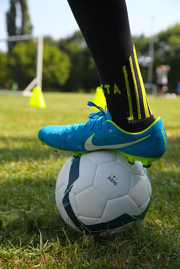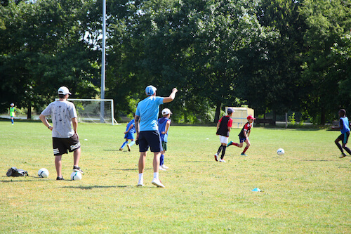 - Ateliers techniques : Apprends les gestes fondamentaux (passes, feintes, jonglages, dribbles, frappes, etc.).