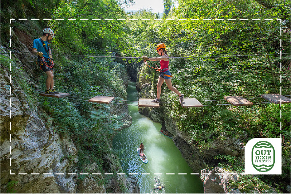 Le parc naturel Canyon Park se visite par le haut pour tester ton équilibre et ton audace avec un parcours à mi-chemin entre accrobranche et via ferrata !🏞️ Randonnées panoramiques dans le massif italien