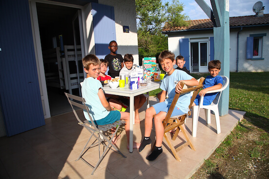 Le “Village des sports” s’est implanté à Sabres (40), une commune rurale des Landes située à 95 km de Bordeaux. Tous les menus variés et équilibrés sont élaborés sur place par le cuisinier en chef, servis dans l'un des espaces repas de la structure : espace en plein air ou salle à manger.