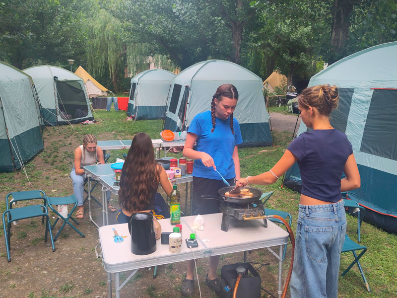Ce séjour c’est aussi un voyage en équipe. Chacun met la main à la pâte ! Faire les courses, cuisiner, monter et démonter les tentes, faire la vaisselle… La solidarité et l’entraide font partie du voyage.