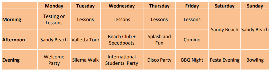 Les étudiants sont pris en charge de leur arrivée à Malte jusqu'à leur départ. Les jeunes sont surveillés constamment afin d'assurer le bon déroulement du séjour. L'équipe sera aux petits soins des étudiants 24h/24 pendant les cours, activités et hébergement.