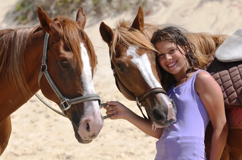 Activités supplémentaires : Baignades avec les chevaux (été), parcours aventure, détente à la piscine, moments de baignade dans l'océan.