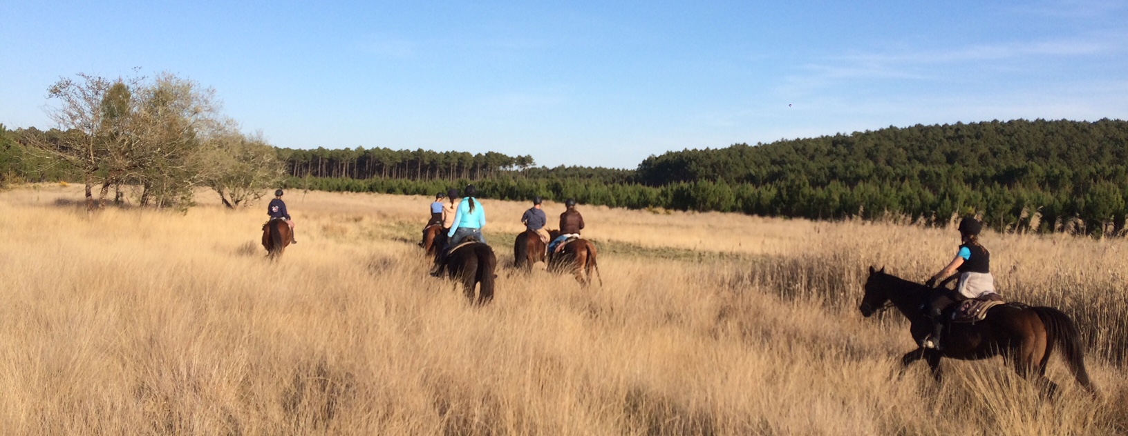 Randonnée dans la Haute Lande avec de nombreux galops en direction de Mézos pour déjeuner.