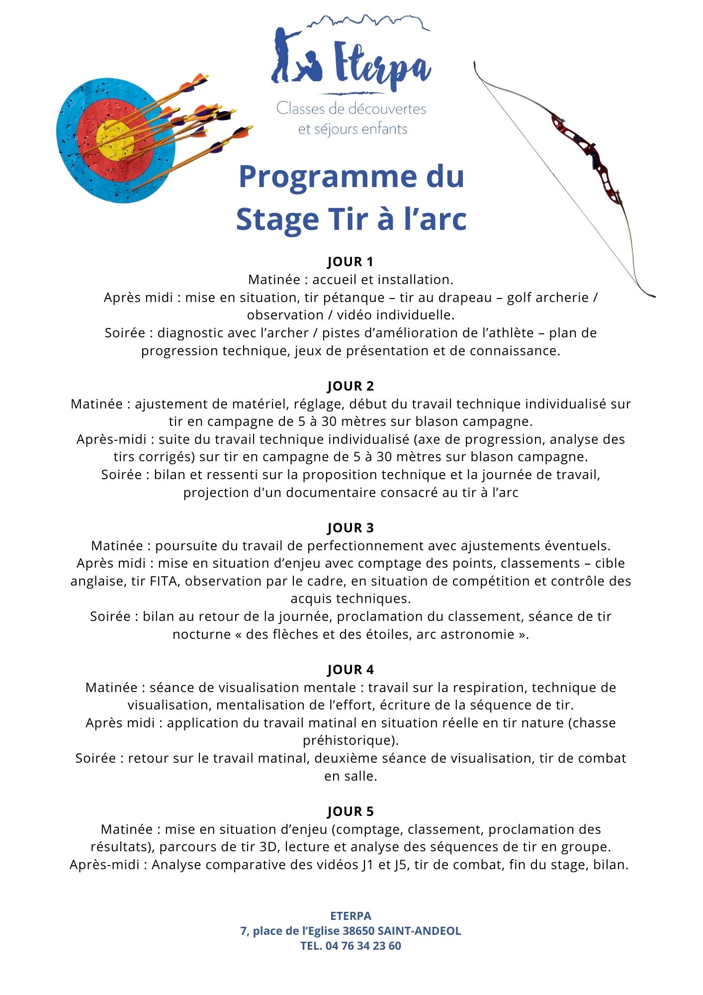 L'enseignement du tir à l’arc programmé durant ce stage est conforme à la démarche fédérale préconisée par la FFTA afin que les participants trouvent une continuité et une cohérence avec le travail dispensé en club.