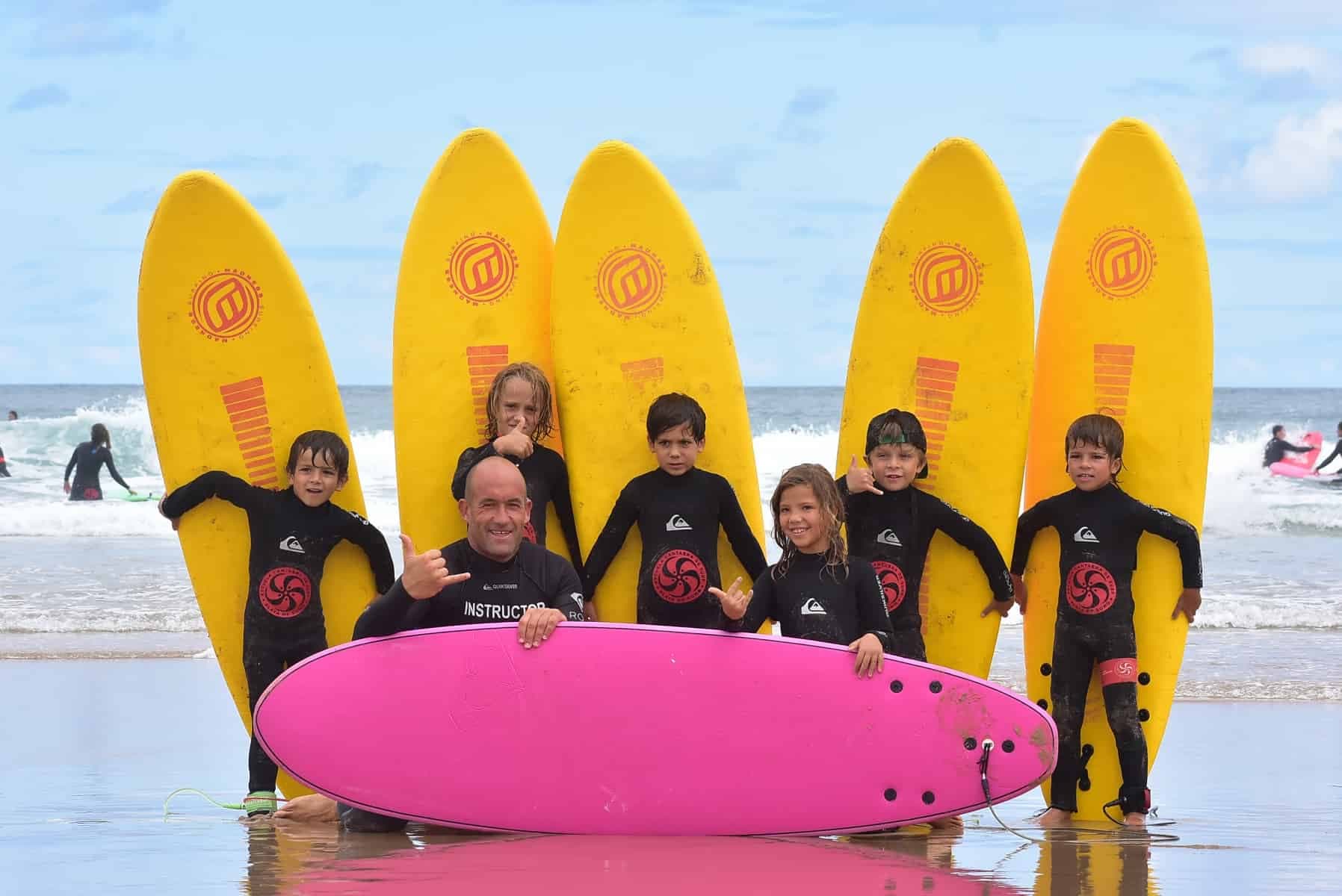 Encadrement des cours de surf par des surfeurs professionnels.