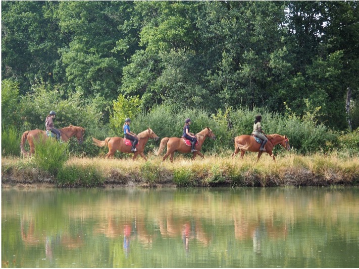 En plus des séances d’équitation, tu auras l’occasion de partir à la découverte de la faune et de la flore locales : observer les cygnes glissant sur l’eau, écouter le chant des oiseaux ou encore croiser les animaux de la ferme – ânes, paons, oies, vaches et bien d’autres.
